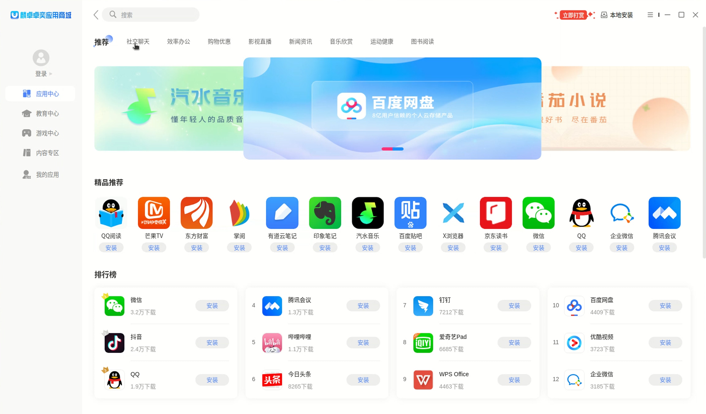 集成提供超10万款安卓应用的便捷在线安装,一站式满足办公、娱乐、游戏等全场景需求。